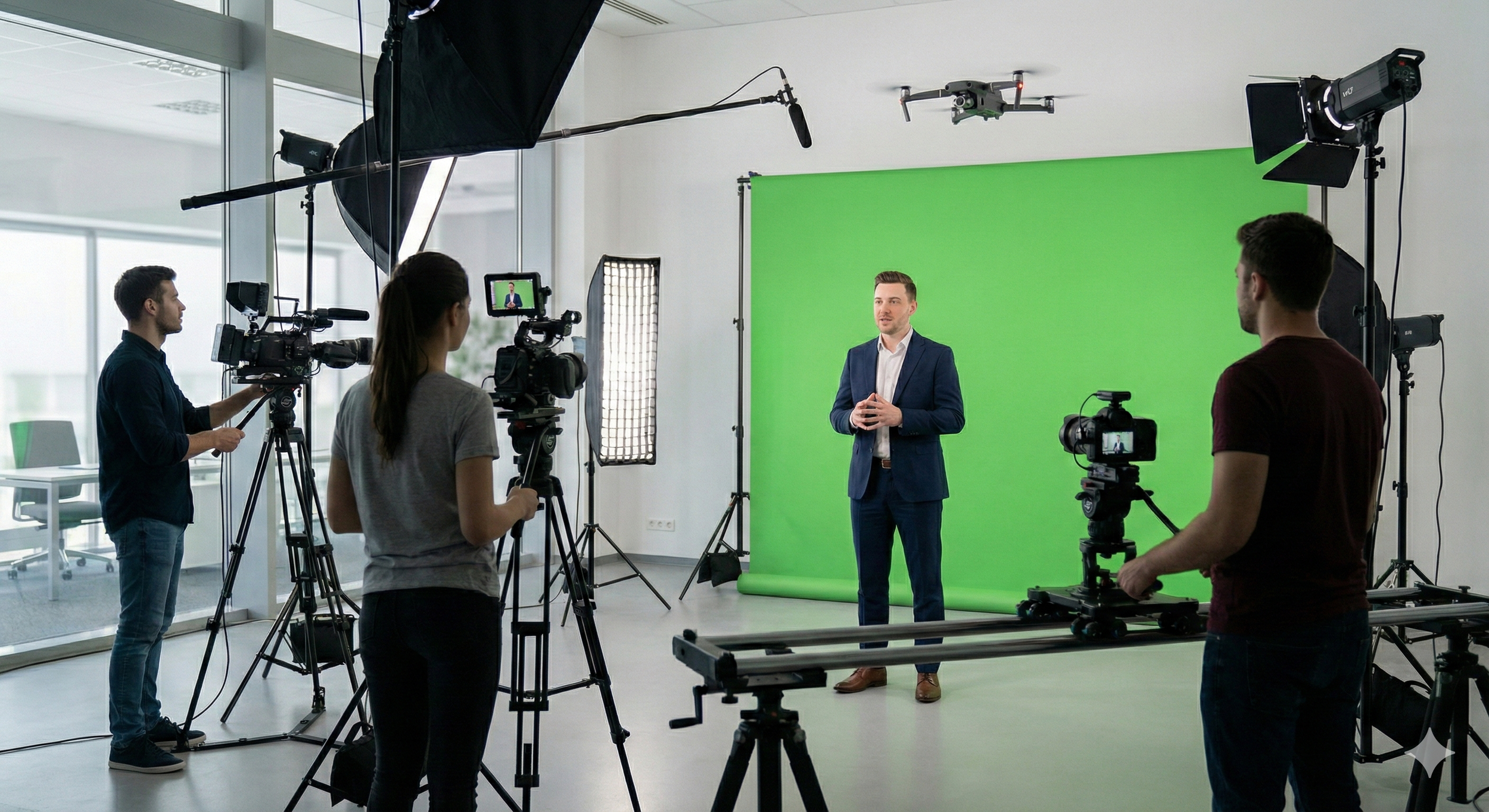 ✅ Tournage Pro Mensuel (1h) : Captation dans vos locaux avec équipement professionnel (Caméra 4K, Audio, Drone).